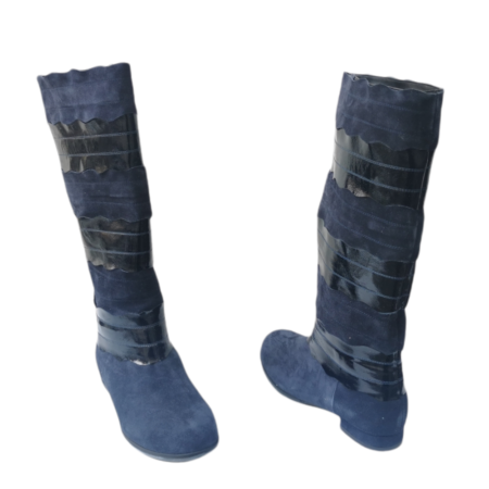Exterior: piele naturală. Interior: material tehnic încălțăminte. Înălțime toc: circa 7.5 -8 cm. Închidere: fermoar. Înălțime botina: circa 11-12 cm. Lucrate manual în România!