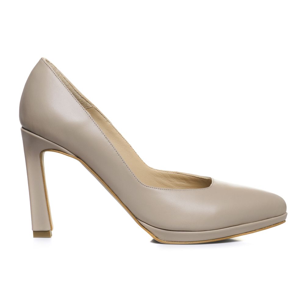 Pantofi eleganți din piele naturală bej, cu toc stabil și platformă pentru confort sporit. Realizați pe comandă, cu posibilitate de personalizare a culorii și a înălțimii tocului.