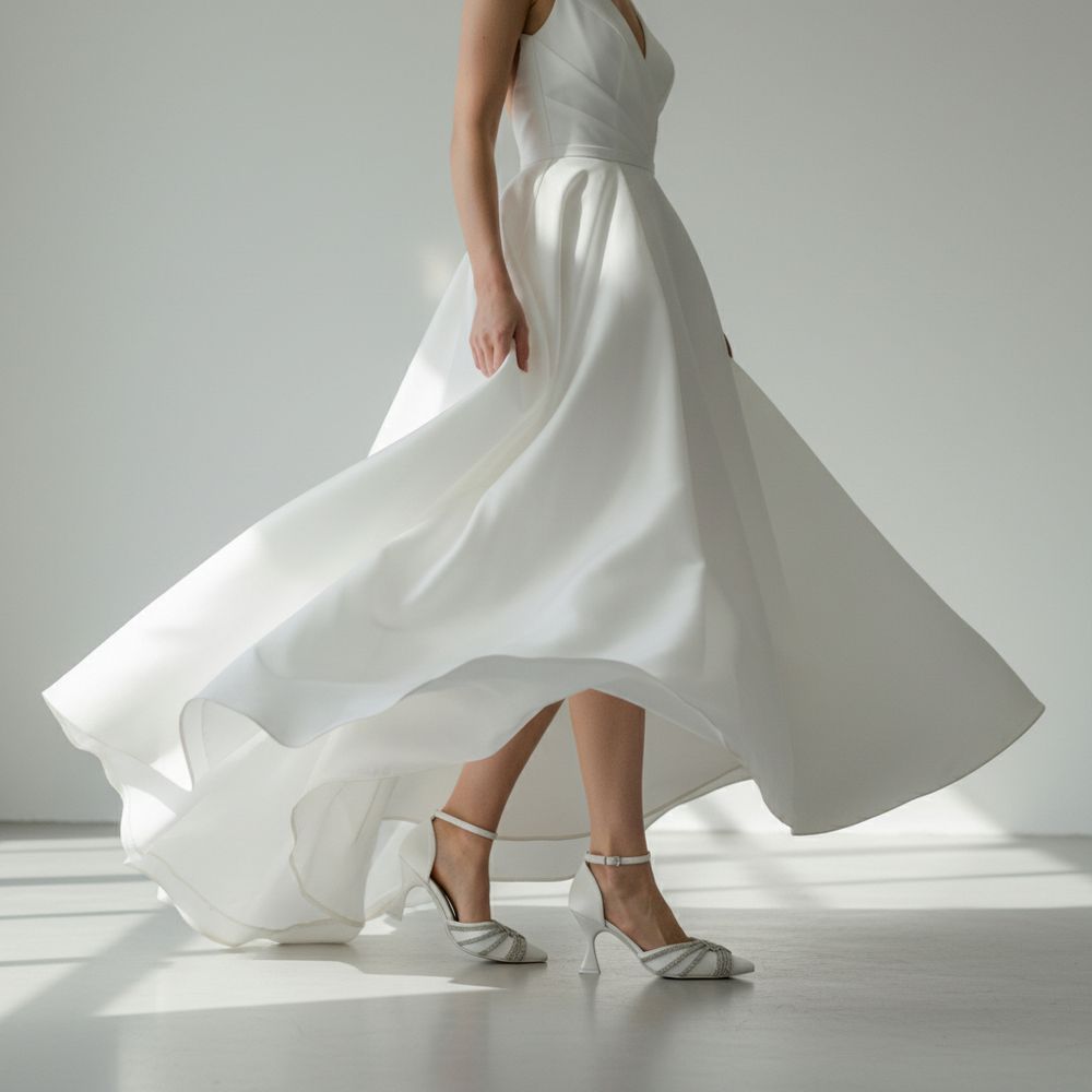 Kaia este un model care îmbină eleganța clasică cu un aer contemporan, ușor de integrat atât în ținute de mireasă, cât și în apariții rafinate, unde fiecare detaliu contează.