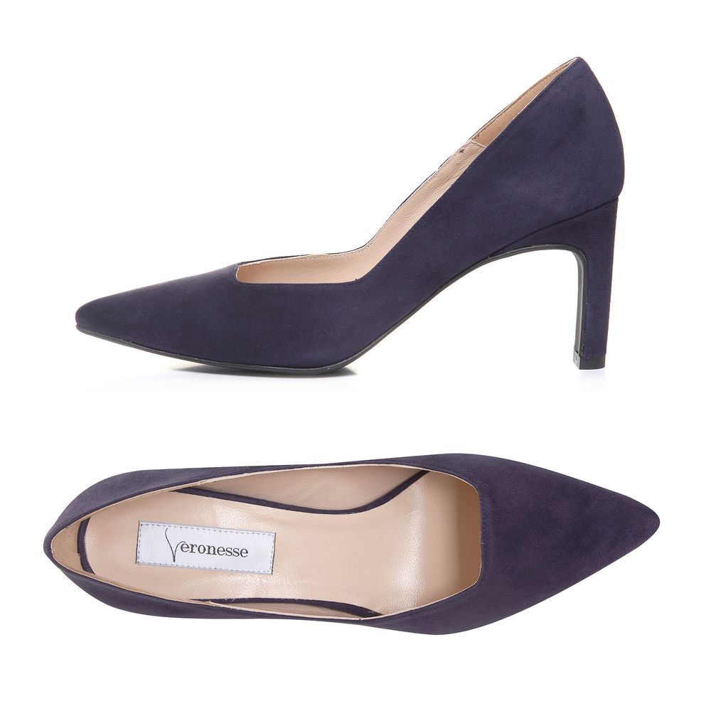 Pantofi stiletto eleganți din piele naturală, realizați la comandă, Veronesse Desiree pentru ținute office sau pentru o petrecere! Vârful ascuțit și tocul mic îi fac perechea ideală pentru orice eveniment! Produsul din fotografie este realizat din piele naturală camoscio, culoare bleumarin. Exterior: piele naturală. Interior: piele naturală. Înălțime toc: circa […]