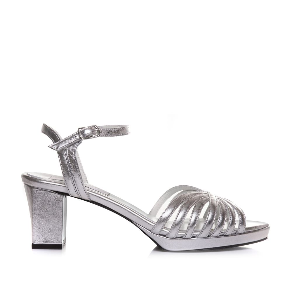 Sandale elegante din piele naturală argintie cu toc mic, Veronesse Luana/217