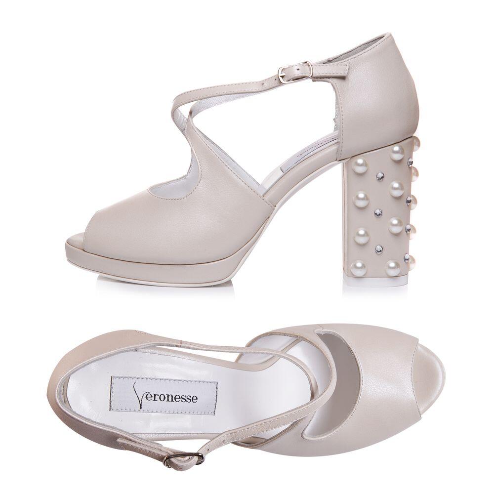Sandale pentru mireasă din piele naturală ivory cu cristale și perle, cu toc masiv, Veronesse 778/011TG sunt elegante și foarte comode. Se asortează ușor oricărei rochii de mireasă.