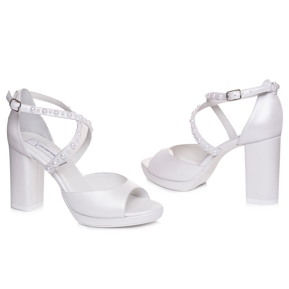 Sandale mireasă din piele naturală albă cu perle, realizate la comandă, Veronesse Jenny Pearl